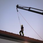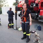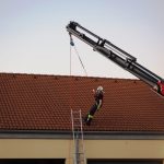 Intensiv geübt wurden diverse Sicherungsmaßnahmen, das Aussteigen aus dem Arbeitskorb auf Dächern und die Kommunikation zwischen der Korbmannschaft und dem Kranführer.