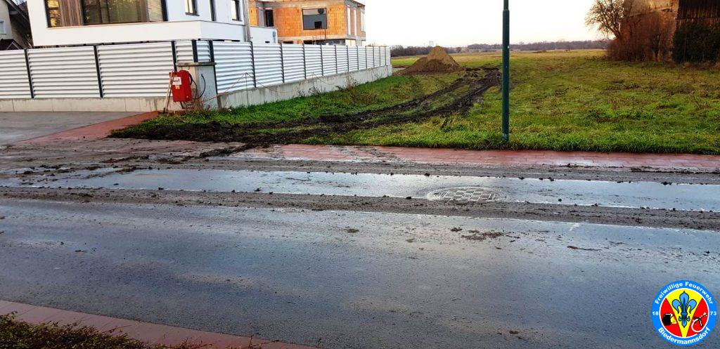 Telefonisch wurde der „Offizier vom Dienst“ durch eine Fachfirma verständigt, dass bei durchgeführten Bergungsarbeiten die Fahrbahn massiv verdreckt wurde. Aus diesem Grund fuhr die Hausbereitschaft aus um die Fahrbahn mittels Hochdruckrohr zu reinigen.