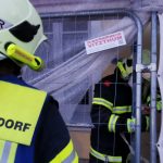 Wenige Minuten später rückten die Mitglieder mit vier Fahrzeugen aus. Am Einsatzort angekommen, konnte rasch Entwarnung gegeben werden, da nur ein Bauzaun durch eine Windböe umgeworfen wurde.