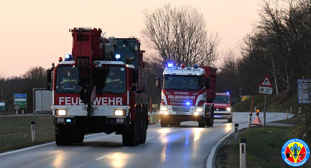 Eingesetzte Fahrzeuge: KDO 1, HLF1-W, RLF-A, WLFA-K, TLF-A, MTF