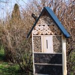 Mittels natürlichen Werkstoffen wurde ein Insektenhotel so wie mehrere Hummelhotels gebaut. Im Inneren der Hotelanlagen sind eigens hergestellt Nist,- und Überwinterungsplätze für Nützlinge in unterschiedlichen Größen.