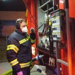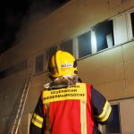 Die erweiterte Löschgruppe musste in das 1. Obergeschoß eine Löschleitung legen, den mobilen Rauchverschluss setzen, eine Raumkühlung durchführen und im Innenangriff die Brandbekämpfung vornehmen. Parallel dazu wurde ein Außenangriff unternommen und die Druckbelüftung in Stellung gebracht.