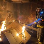 Neuerlich wurde die Chance genutzt und in einem Abrisshaus ein Zimmerbrand mit Echtfeuer geübt.
