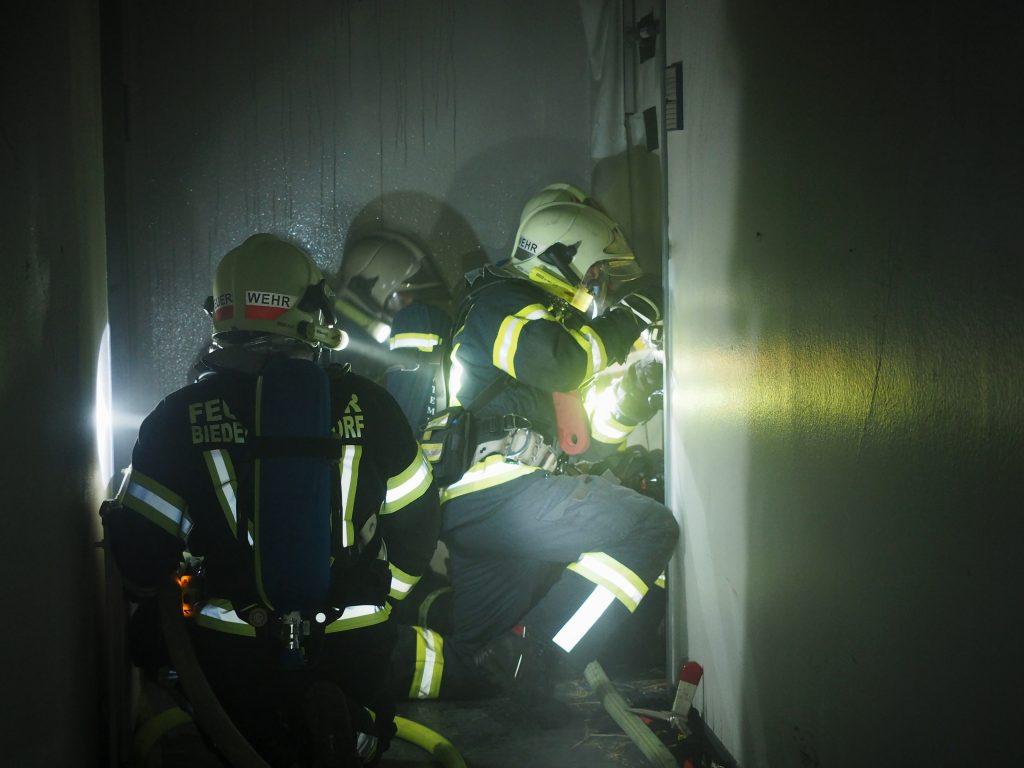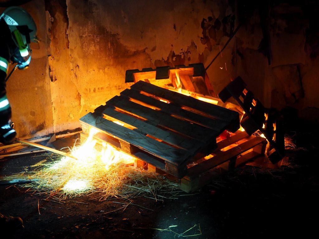 Nach kurzer „Coronapause“ wurde heute wiederum ordentlich eingeheizt! In einem Abrissobjekt wurde ein Zimmerbrand mit Echtfeuer simuliert. Die Einsatzübung an sich war gleich gestaltet zu den letzten beiden, jedoch wurde das Personal bewusst reduziert und der Innenangriff unter schweren Atemschutz, der Außenangriff und die Druckbelüftung mit einer TLF Besatzung (1:6) unternommen.