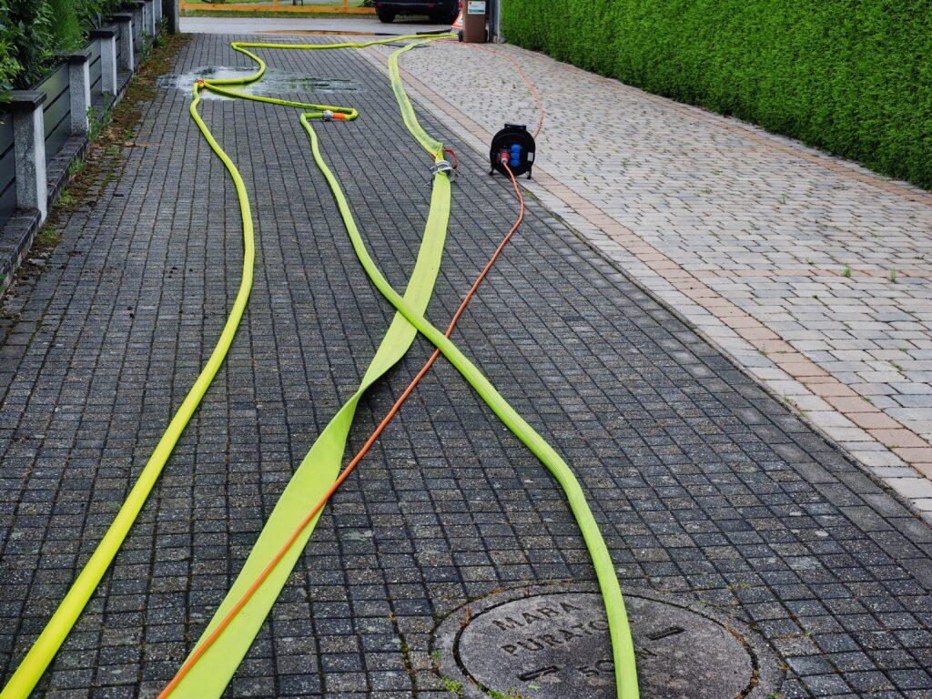 Ein massiver Wassereintritt im Kellerbereich eines Einfamilienhauses alarmierte die Einsatzkräfte, welche rund zweieinhalb Stunden das Wasser mittels Unterwasserpumpen und Wassersaugern aus dem Gebäude pumpte.
