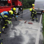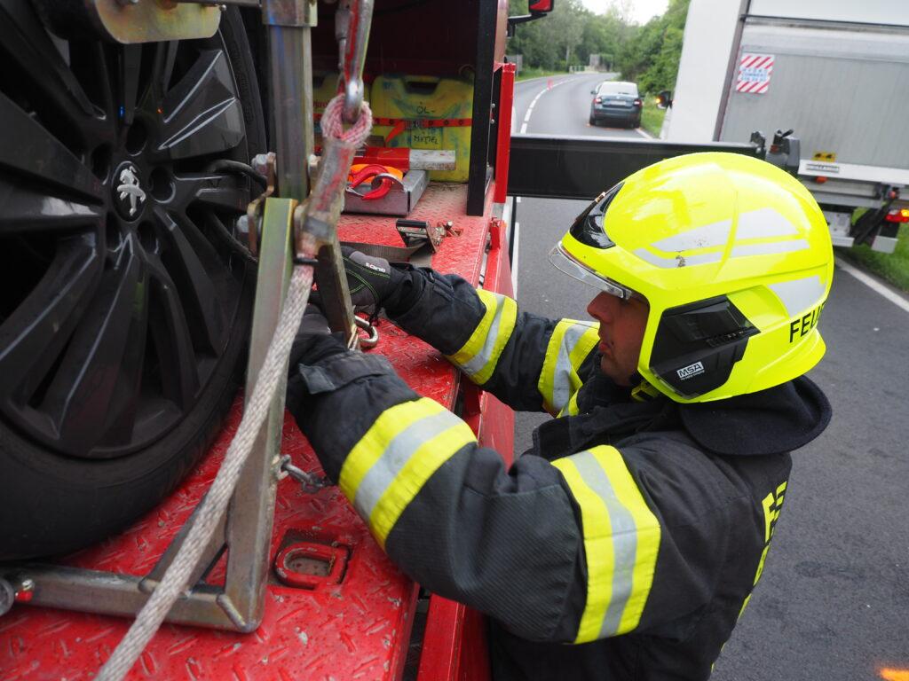 In den Vormittagsstunden ereignete sich auf der Landesstraße B 11 ein Auffahrunfall zwischen 3 Fahrzeugen, wobei eines fahruntüchtig einen Fahrstreifen blockierte. Eine Person musste vom Rettungsdienst in ein Krankenhaus eingeliefert werden. Von den Feuerwehrkräften wurden ausgetretene Betriebsstoffe gebunden, die Fahrbahn gereinigt, der PKW mittels Kran geborgen und abtransportiert.