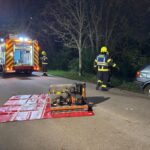 Vor Ort wurde neben dem stark deformierten PKW zusätzlich eine Schadstoffkomponente durch den Einsatzleiter festgestellt. Nach umfangreicher Erkundung, teils auch unter umluftunabhängigem Atemschutz, wurde die Sicherheit für alle Kräfte festgestellt.