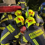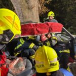 In weiterer Folge begann die eigentliche Menschenrettung aus dem KFZ. Nach Sicherung des PKW und Durchführung des Glasmanagements wurde eine Zugangs,- und Rettungsöffnung mittels hydraulischem Spreizer und Schere geschaffen. In Anbetracht der „golden hour“ wurde die Person (dargestellt durch eine Puppe) mittels Spineboard aus dem KFZ gerettet und dem fiktiv anwesenden Rettungsdienst übergeben.