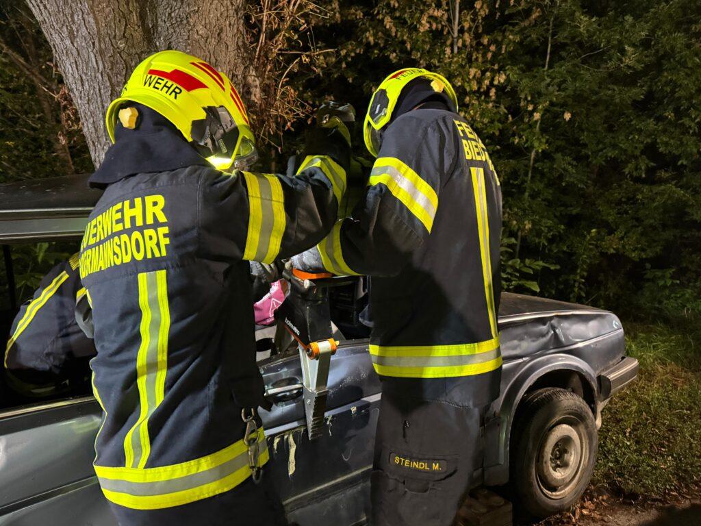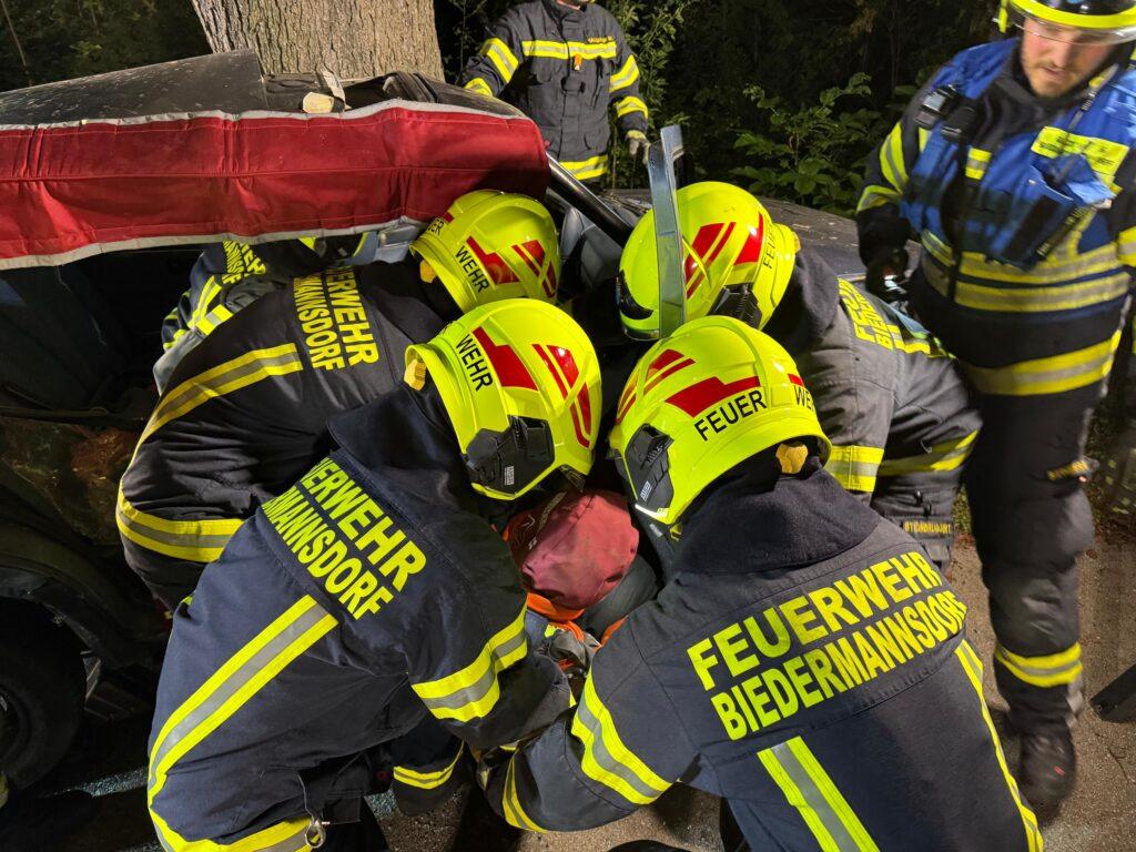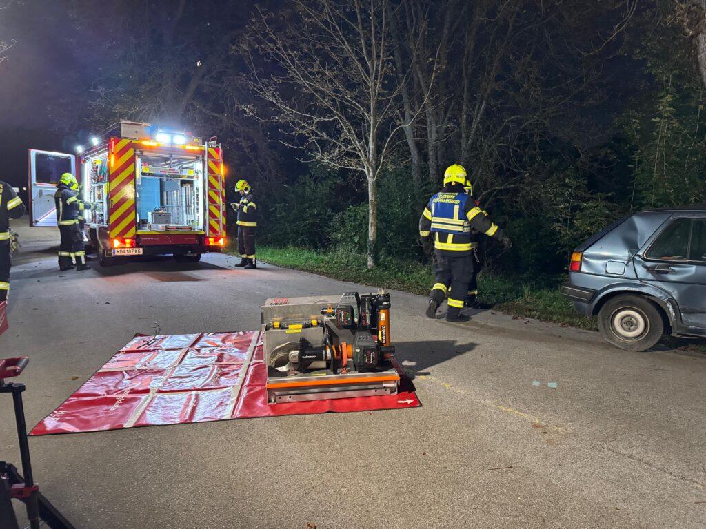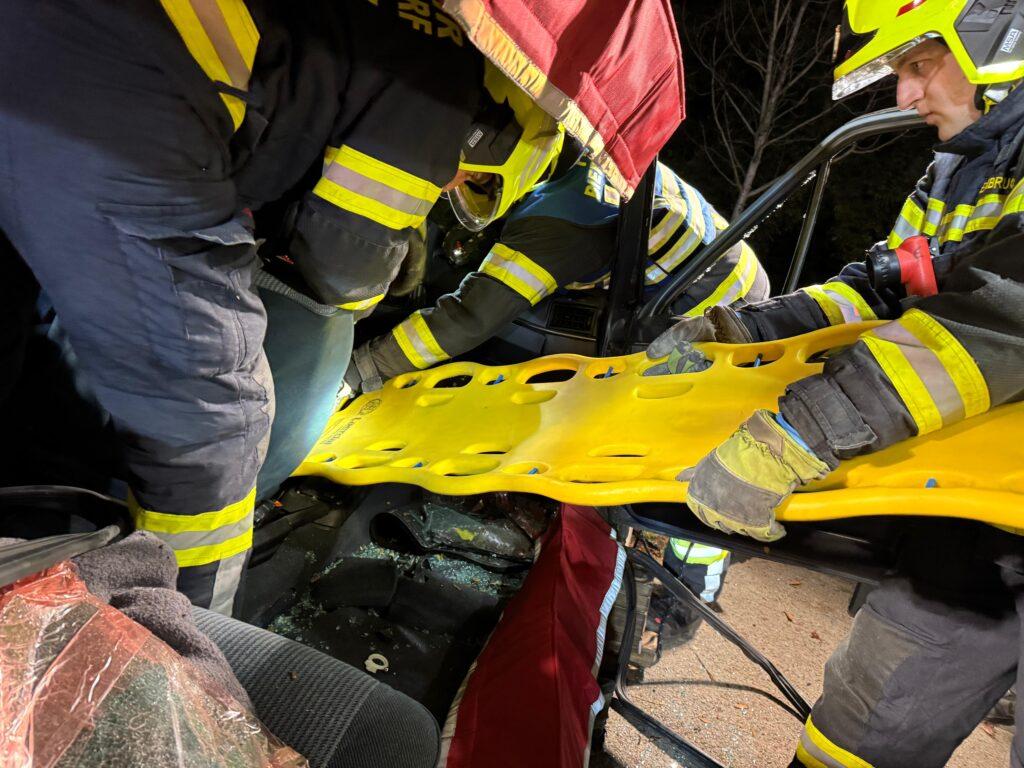 In weiterer Folge begann die eigentliche Menschenrettung aus dem KFZ. Nach Sicherung des PKW und Durchführung des Glasmanagements wurde eine Zugangs,- und Rettungsöffnung mittels hydraulischem Spreizer und Schere geschaffen. In Anbetracht der „golden hour“ wurde die Person (dargestellt durch eine Puppe) mittels Spineboard aus dem KFZ gerettet und dem fiktiv anwesenden Rettungsdienst übergeben.