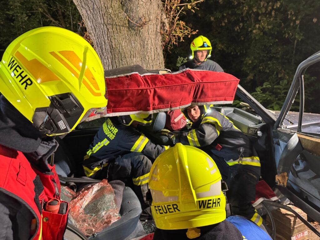 „Verkehrsunfall mit Menschenrettung, eine Person im Fahrzeug eingeklemmt“ lautete das fiktive Alarmstichwort für die Mitglieder der 2. Gruppe.