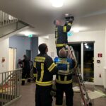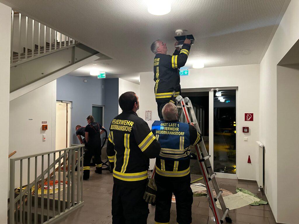 Während der zeitgleich stattgefundenen Einsatzübung wurden die Einsatzkräfte alarmiert. Vor Ort eingetroffen strömte das Wasser nach wie vor aus der Leitung. Durch den Einsatzleiter wurde der Wasserhaupthahn zur unter anderem betroffenen Wohnung abgedreht.