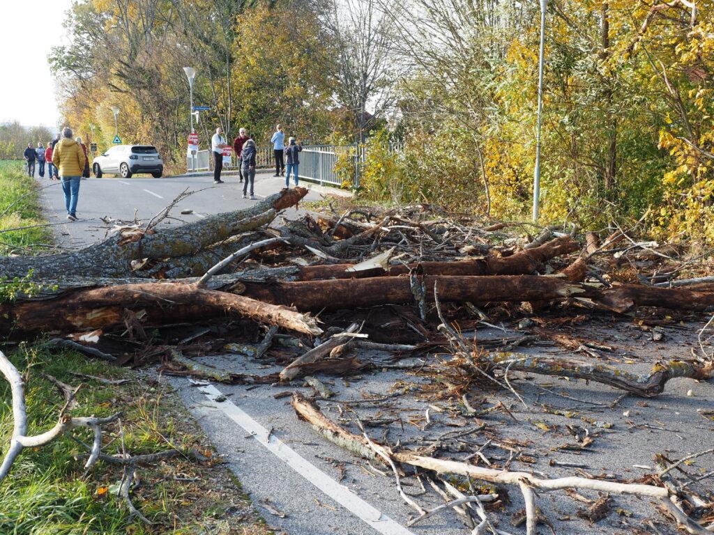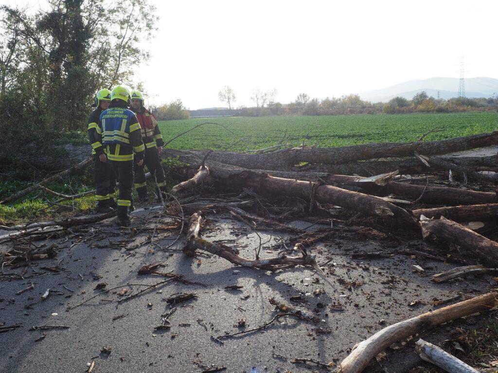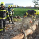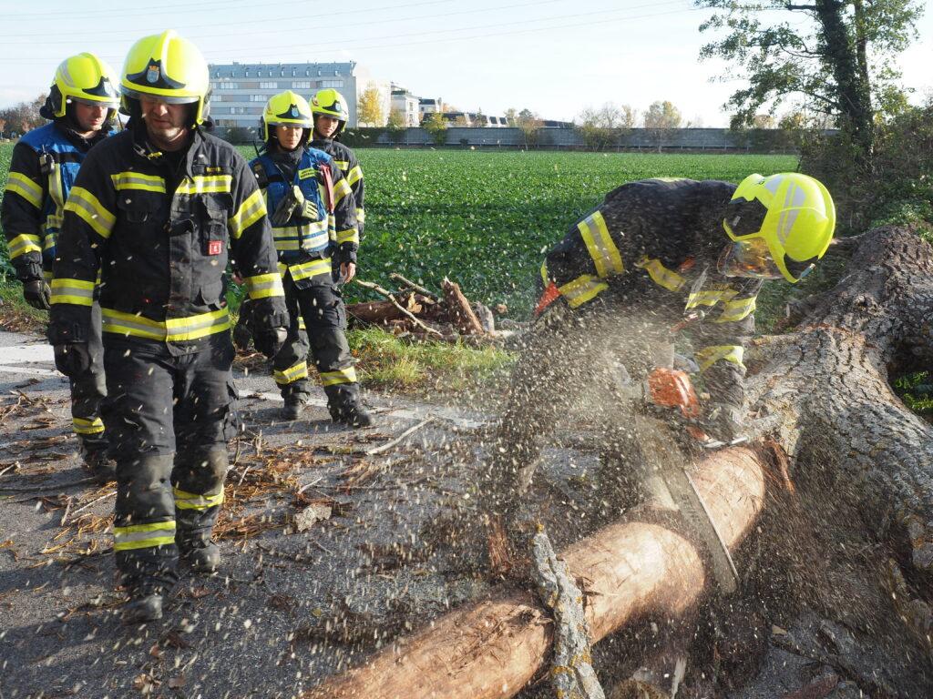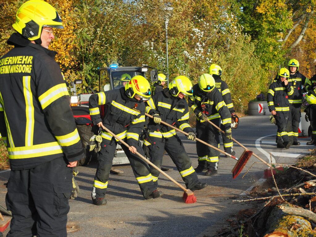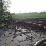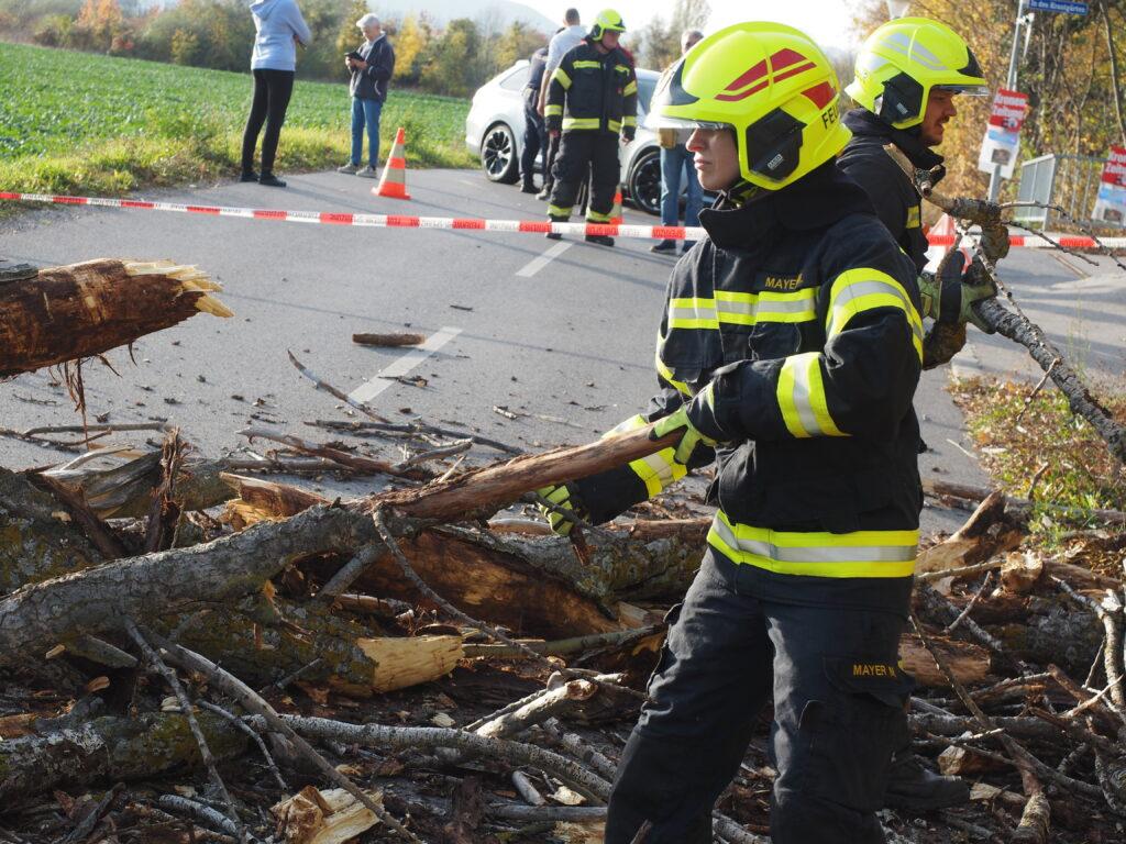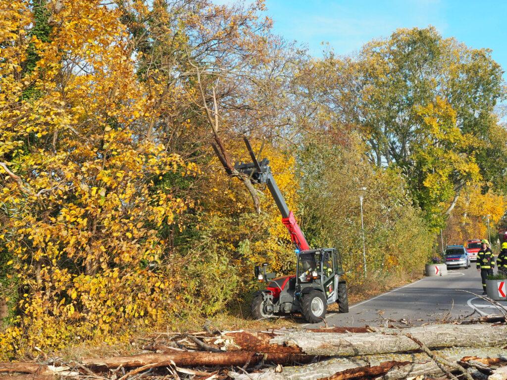 „Baum umgestürzt“ lautete das Alarmstichwort. Vor Ort eingetroffen wurde der umgestürzte große Baum mittels Kettensäge klein geschnitten. Die schweren Holzstücke wurden per Telelader in das Straßenbankett geschoben. Auch wurden größere abgebrochenen Äste, welche sich im gegenüberliegenden Dickicht befanden, mittels Telelader entfernt.