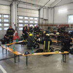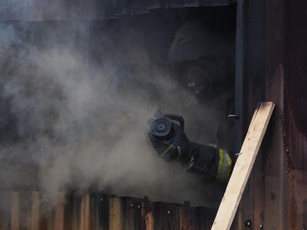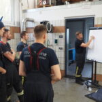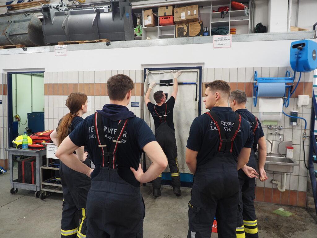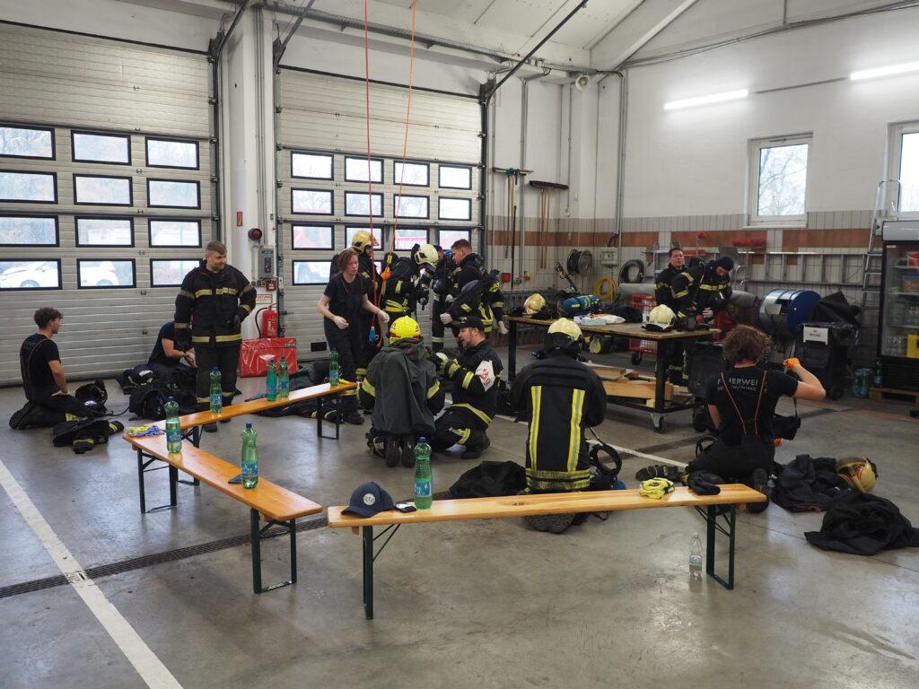 In den Stehzeiten wurden die Gerätschaften wiederum versorgt, hydriert, gegessen und Themen wie taktische Setzung mobiler Rauchverschlüsse, taktische Ventilation und das richtige Löschen eines Brandherdes im Innenangriff besprochen und vorgeführt.