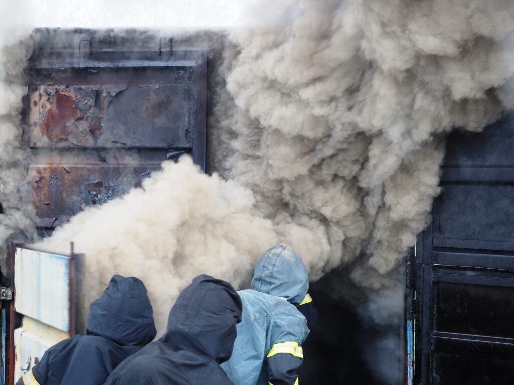 Rauchgaskühlung in der Vorwärtsbewegung / Einbeziehung einer im Container aufgebauten Deckung (Mauervorsprung, Türe, …)