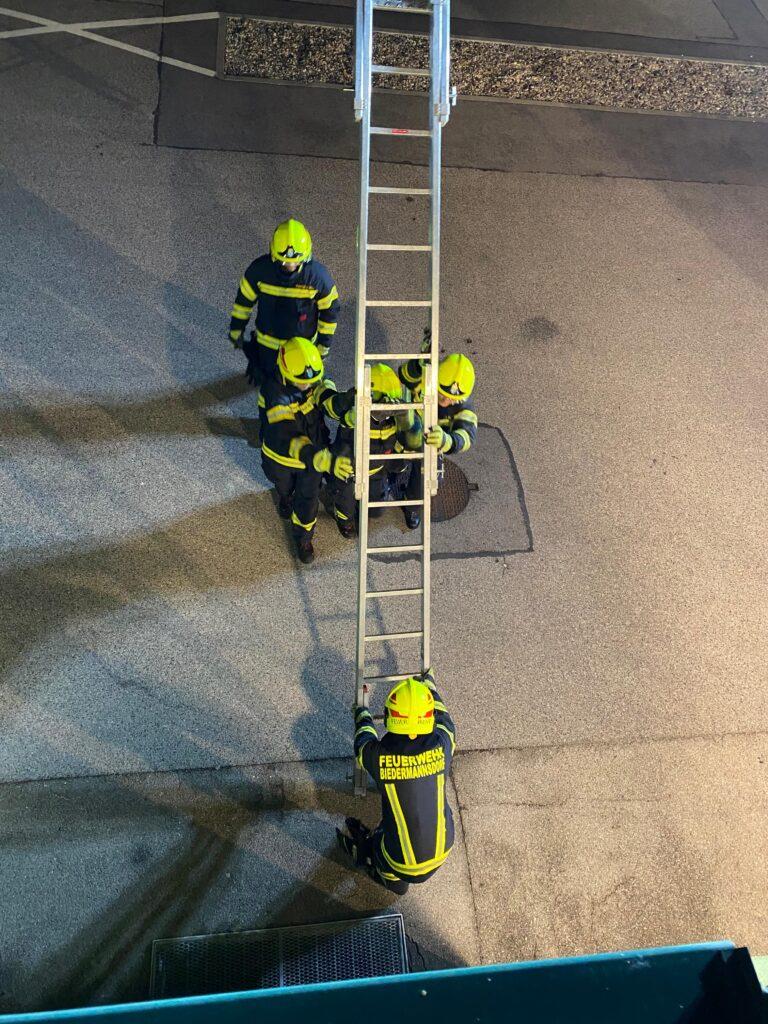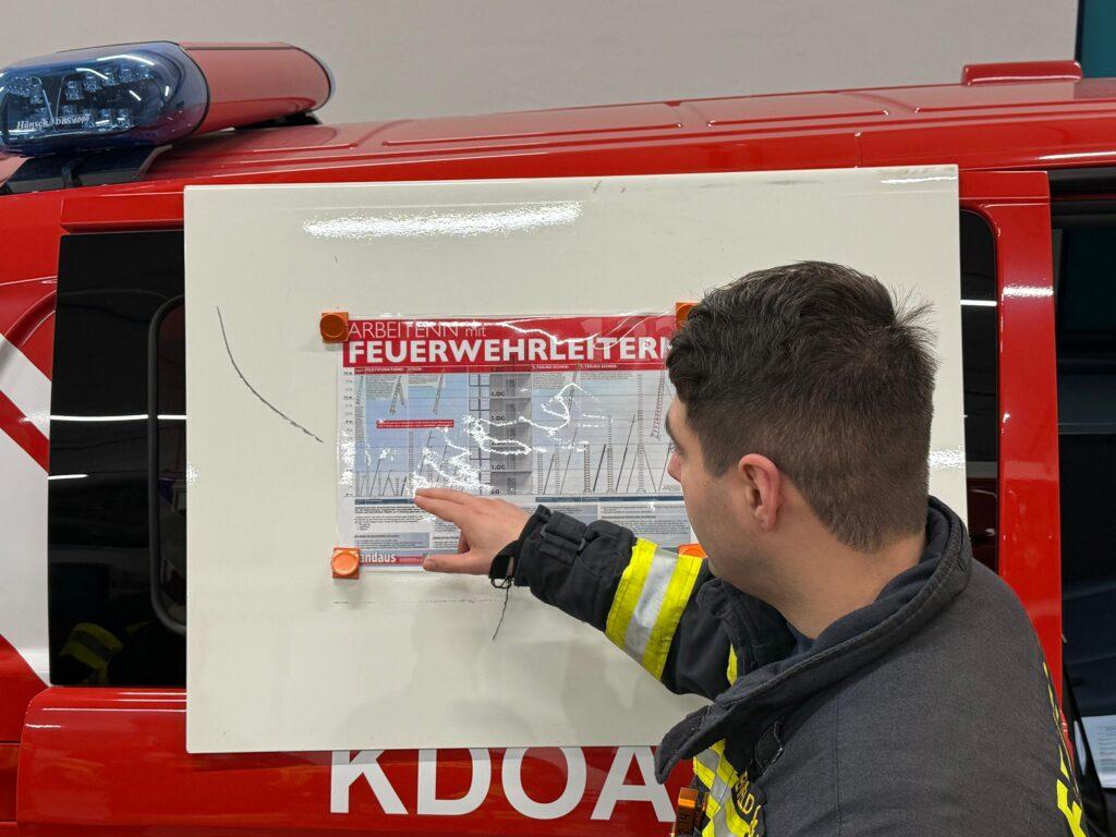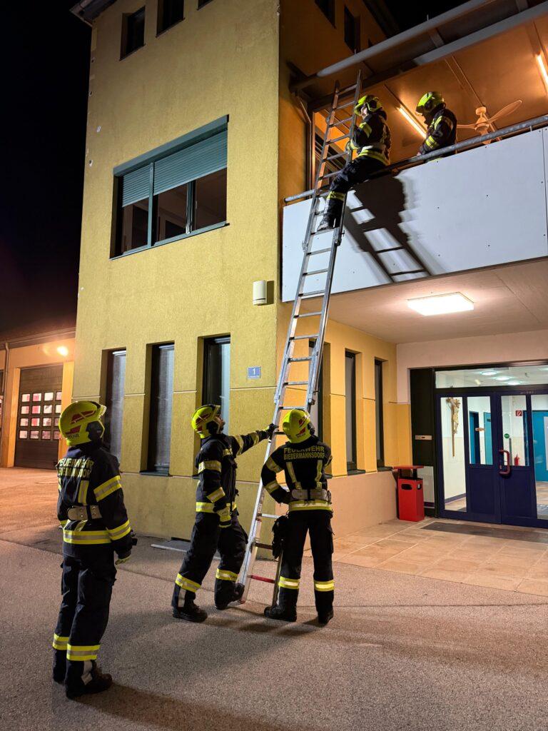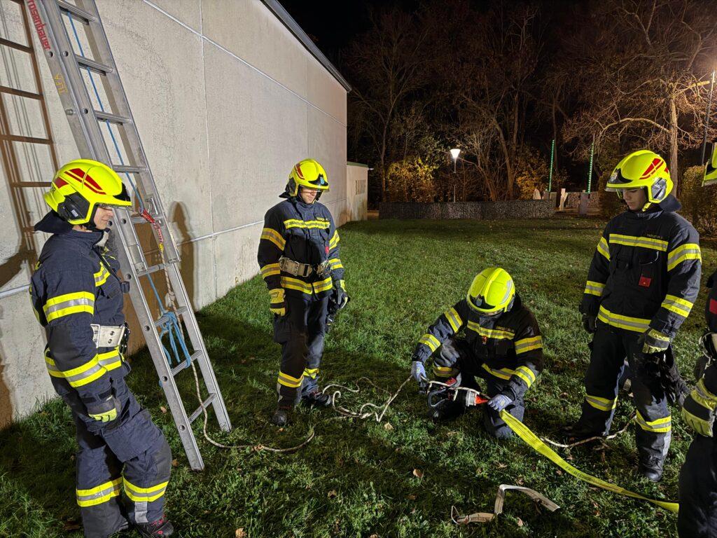 Die Mitglieder der Gruppe 1 wurden im Umgang mit den Leitern im Feuerwehrdienst geschult. Zu Beginn wurde in der Fahrzeughalle erklärt wann welche Leiter zielführend ist und wo welche Leitern in den Fahrzeugen gelagert ist. Im Anschluss wurden die Mehrzweckleiter, Teleskopleiter, Steck,- und Schiebeleiter praktisch beübt. Im Zuge dessen wurde das Übersteigen, die Menschenrettung und das Besteigen mit Strahlrohr trainiert.
