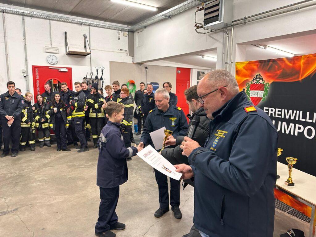 Die Biedermannsdorfer Jugendgruppe erkämpfte stolz den vierten Preis, welcher beim offiziellen Abschluss durch den stellvertretenden Bezirksfeuerwehrkommandanten BR Christian GIWISER überreicht wurde.