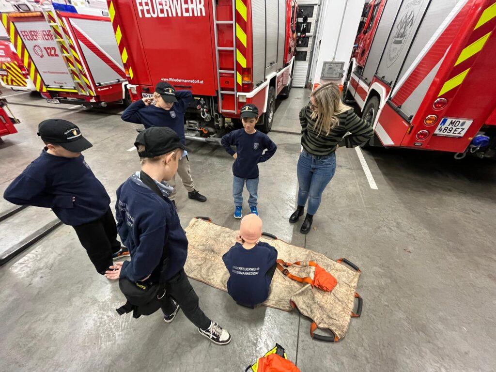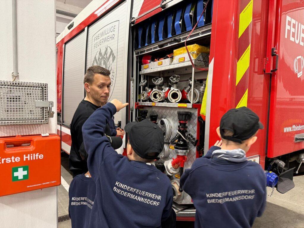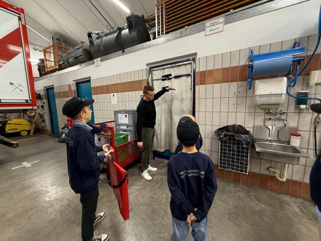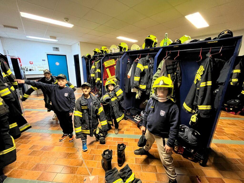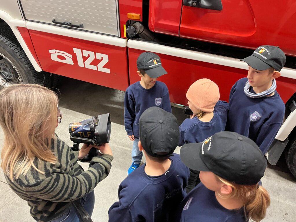 Die Mitglieder der Kinderfeuerwehr gingen Donnerstagabend auf Tuchfühlung mit der Ausrüstung für den Brandeinsatz. Es wurde die persönliche Schutzausrüstung (PSA), Geräte bzw. Material zur Menschenrettung, das Atemschutzgerät und die Wärmebildkamera erklärt und durch die Jüngste sogleich auch bedient.