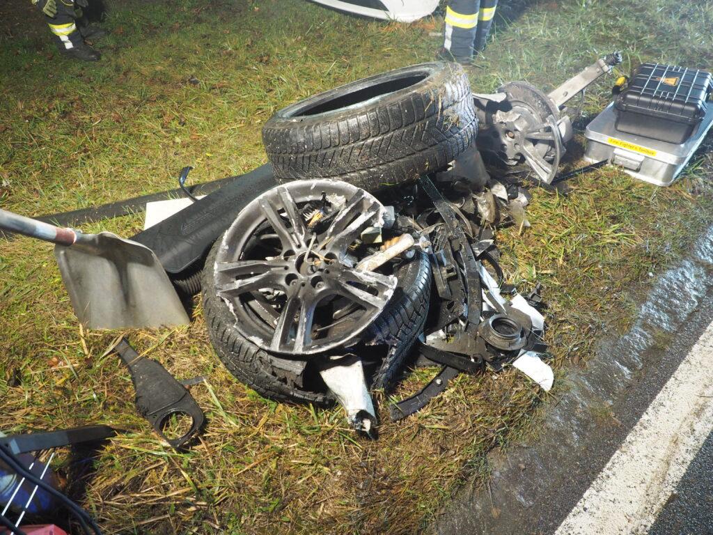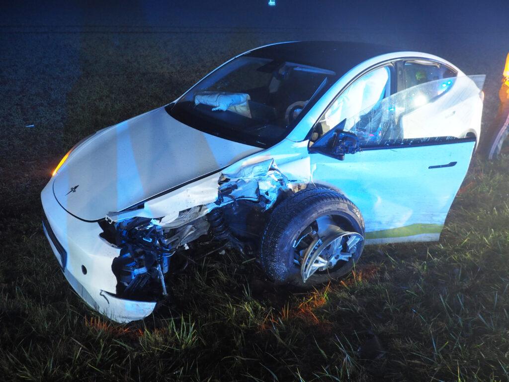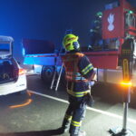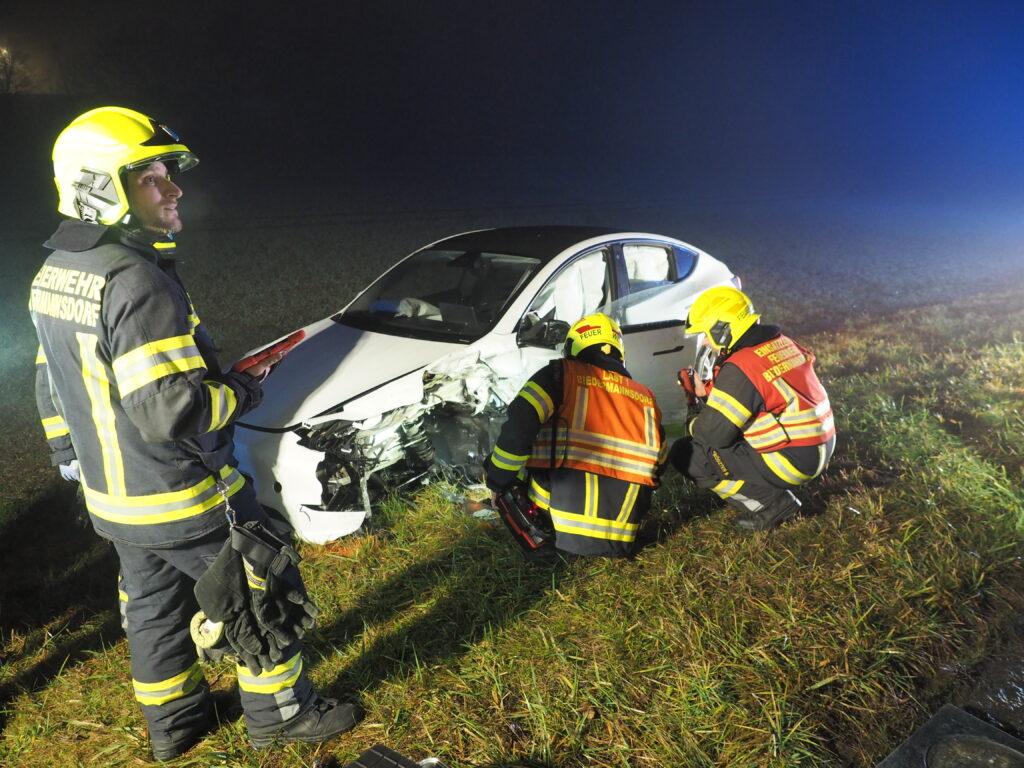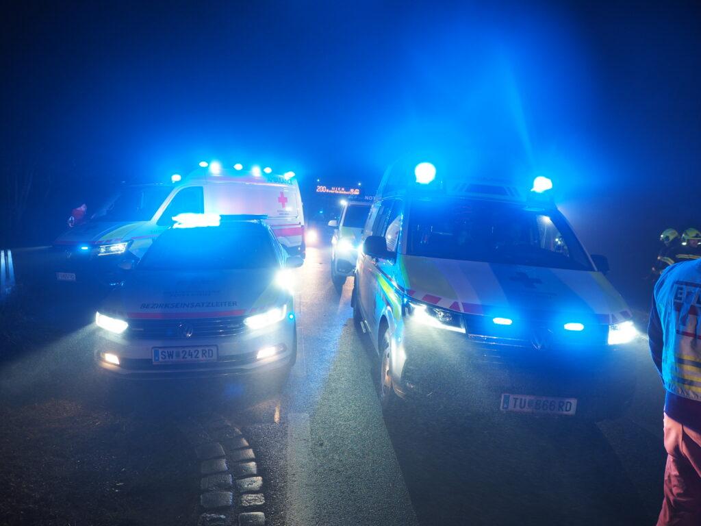 Vor Ort eingetroffen, wurde der Feuerwehreinsatzleiter durch den bereits anwesenden Bezirkseinsatzleiter des roten Kreuzes eingewiesen. Es waren zwei Fahrzeuge beteiligt, wobei eines die Fahrbahn blockierte und eines im Feld stand.