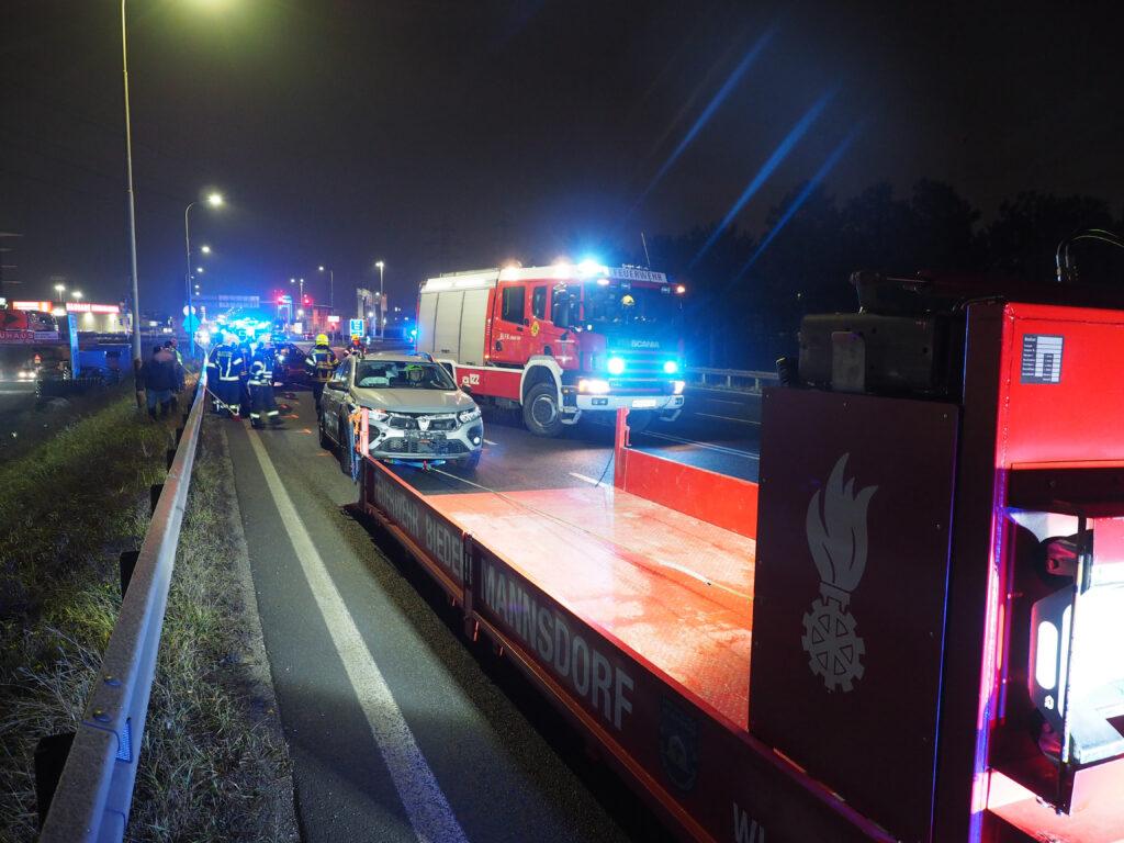 Im dichten abendlichen Berufsverkehr des 17.12.2026 wurden die freiwilligen Einsatzkräfte zu einem Verkehrsunfall mit drei beteiligten Fahrzeugen auf die LB 11 alarmiert. Ein Fahrzeug musste mittels hydraulischer Abschleppbrille des Rüstlöschfahrzeuges und ein weiteres mittels Seilwinde des Abschleppplateaus geborgen, sowie die Fahrbahn gereinigt werden.