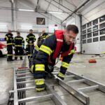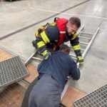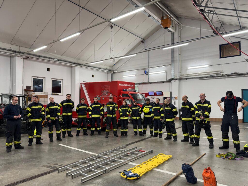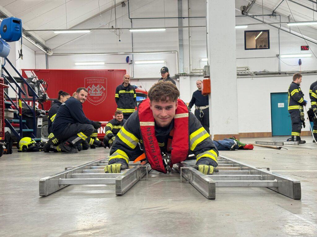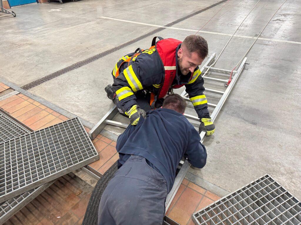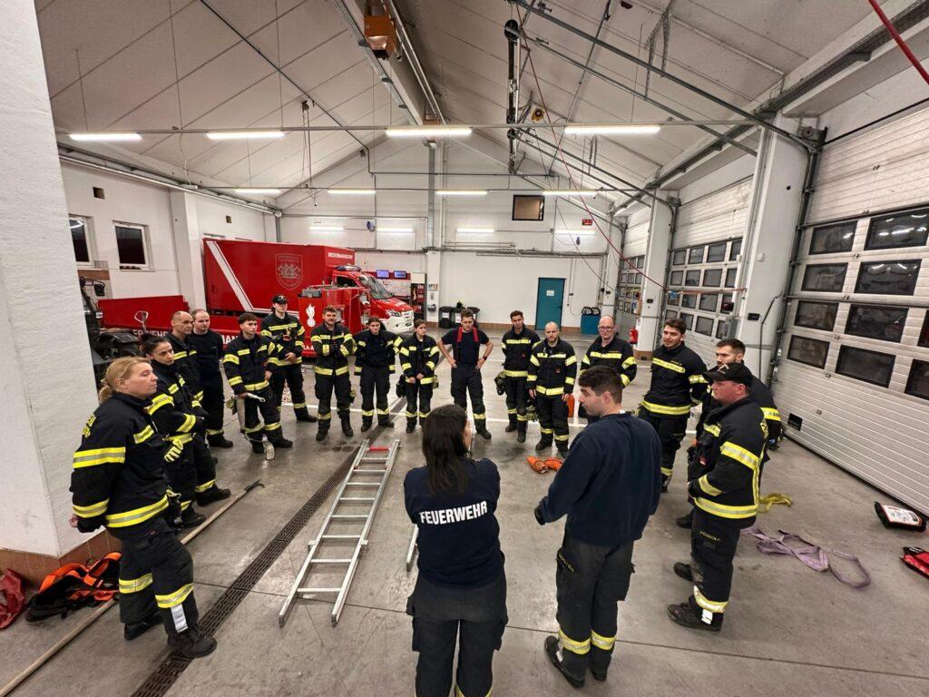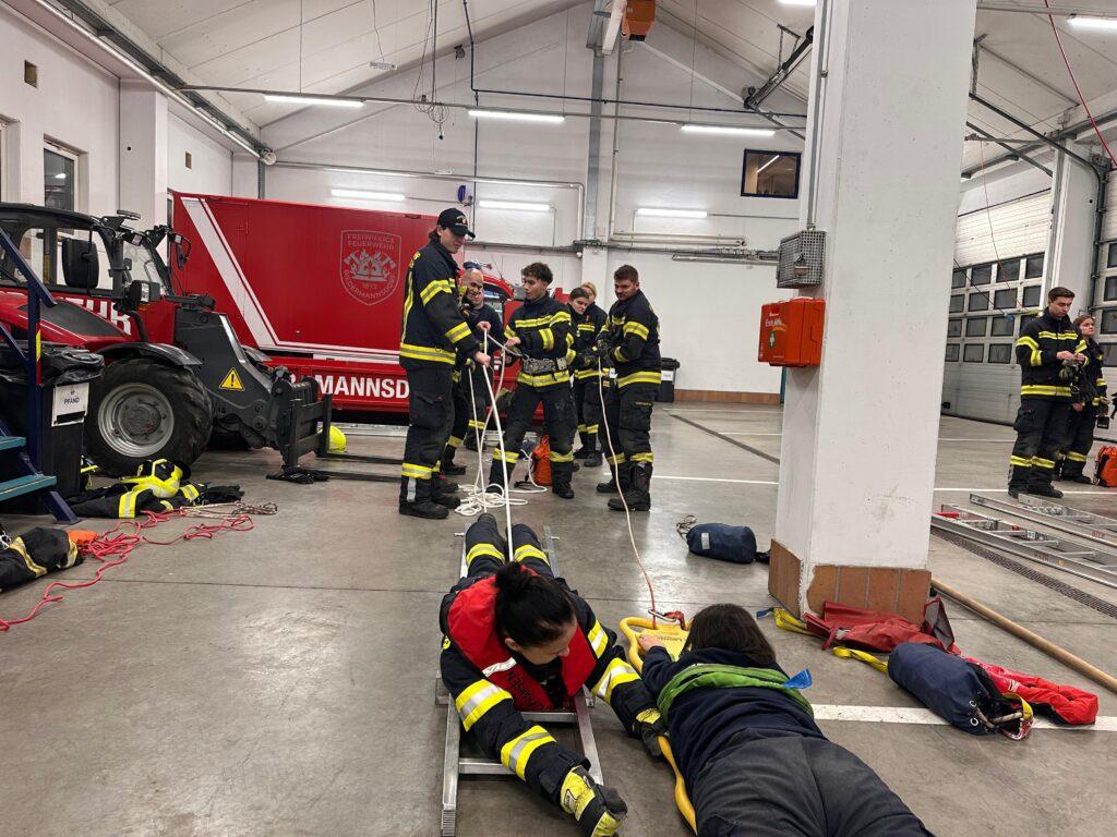 Da die derzeitige Witterung ein Üben am Eis nicht zulässt, wurde kurzer Hand die Fahrzeughalle zur fiktiven Eisfläche umgewandelt.