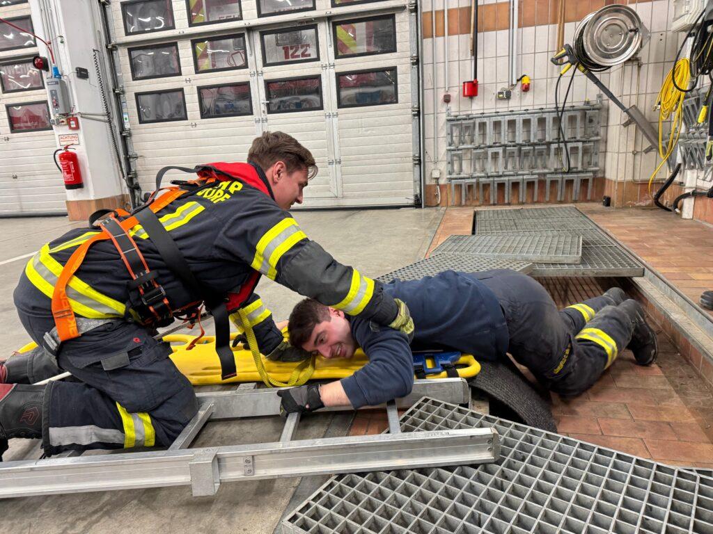 Die Mannschaft wurde auf die verschiedenen Rettungsmöglichkeiten zu Beginn theoretisch geschult, die Handhabung mit dem Gerät und die Vorgehensweise erklärt und zum Abschluss die Eisrettung praktisch geübt.