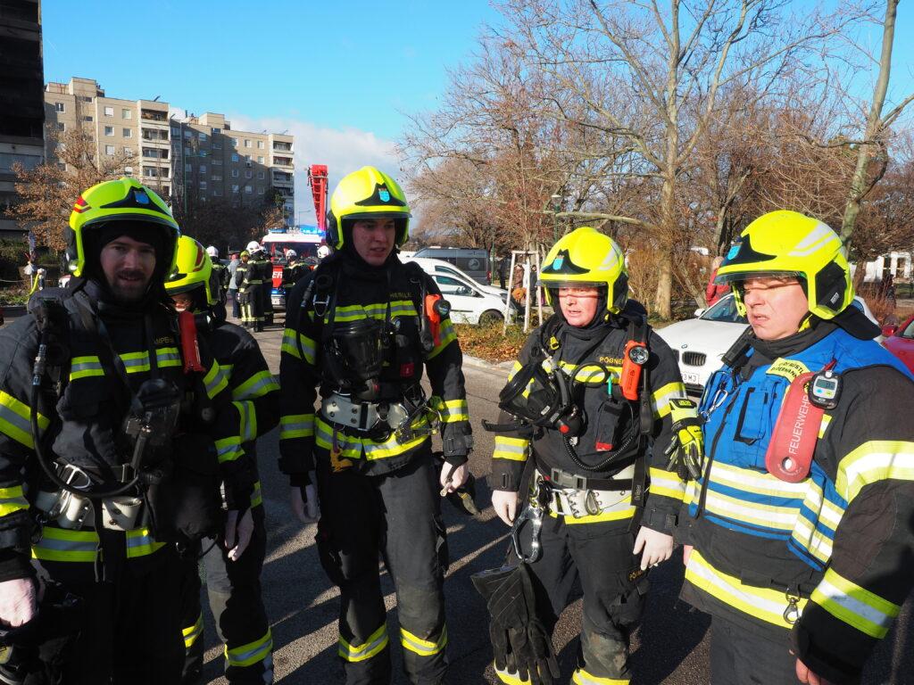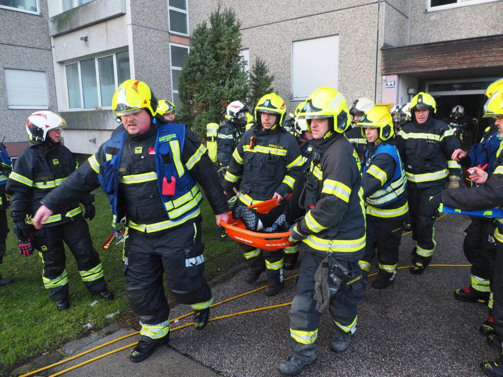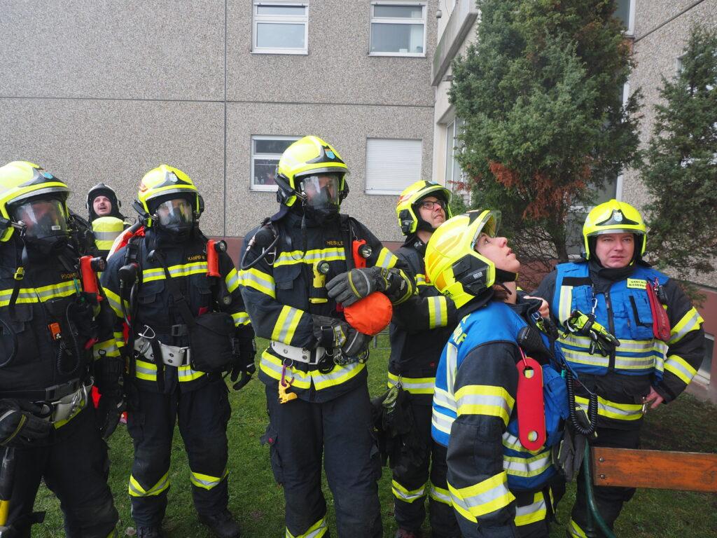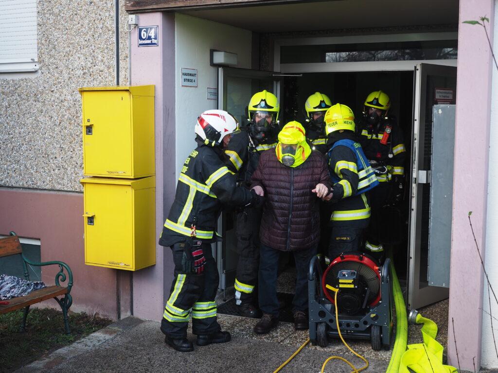 Als Zugsverband ausgerückt wurden bei Eintreffen die drei verfügbaren Atemschutztrupps des Tanklöschfahrzeuges, Rüstlöschfahrzeuges und Hilfeleistungslöschfahrzeuges unverzüglich zur Menschenrettung in das Stiegenhaus samt Kontrolle von Wohnungen kommandiert.