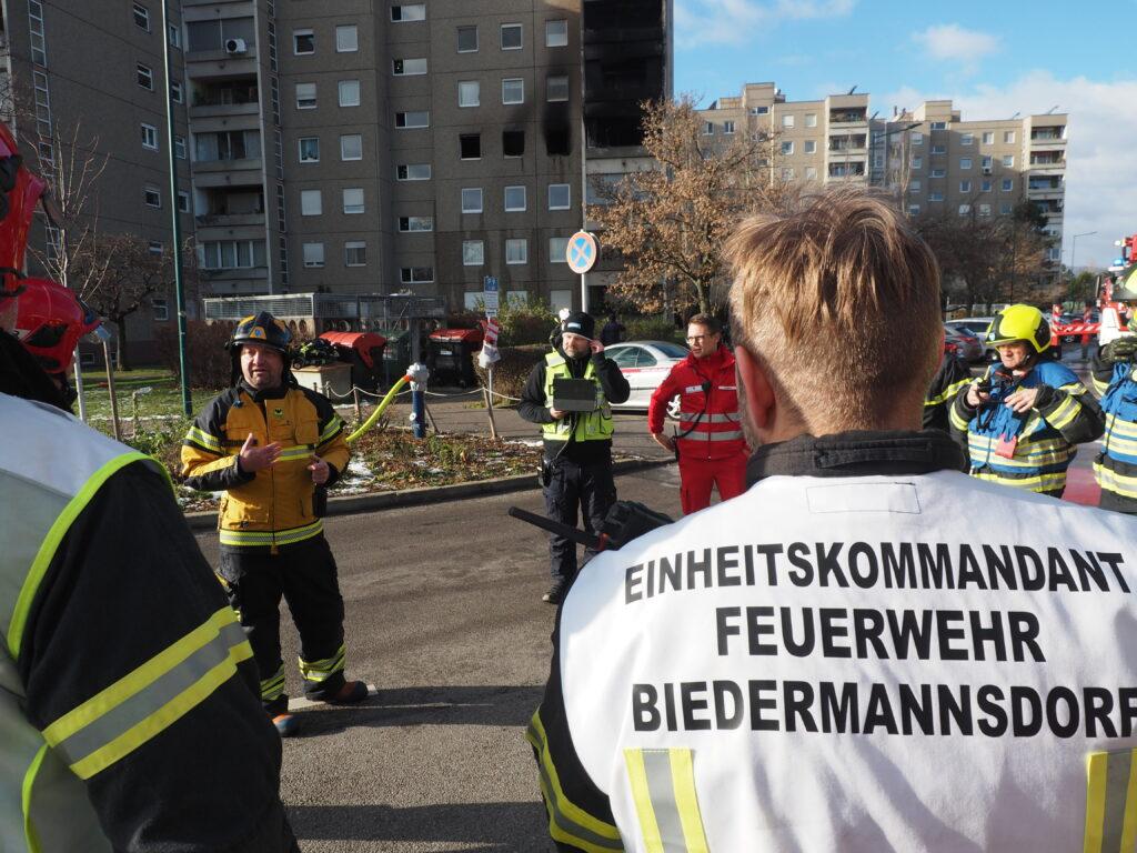 Durch die Atemschutztrupps der Feuerwehr Biedermannsdorf wurde das stark verrauchte Stiegenhaus nach Personen abgesucht. Hierbei konnten keine Personen aufgefunden werden.