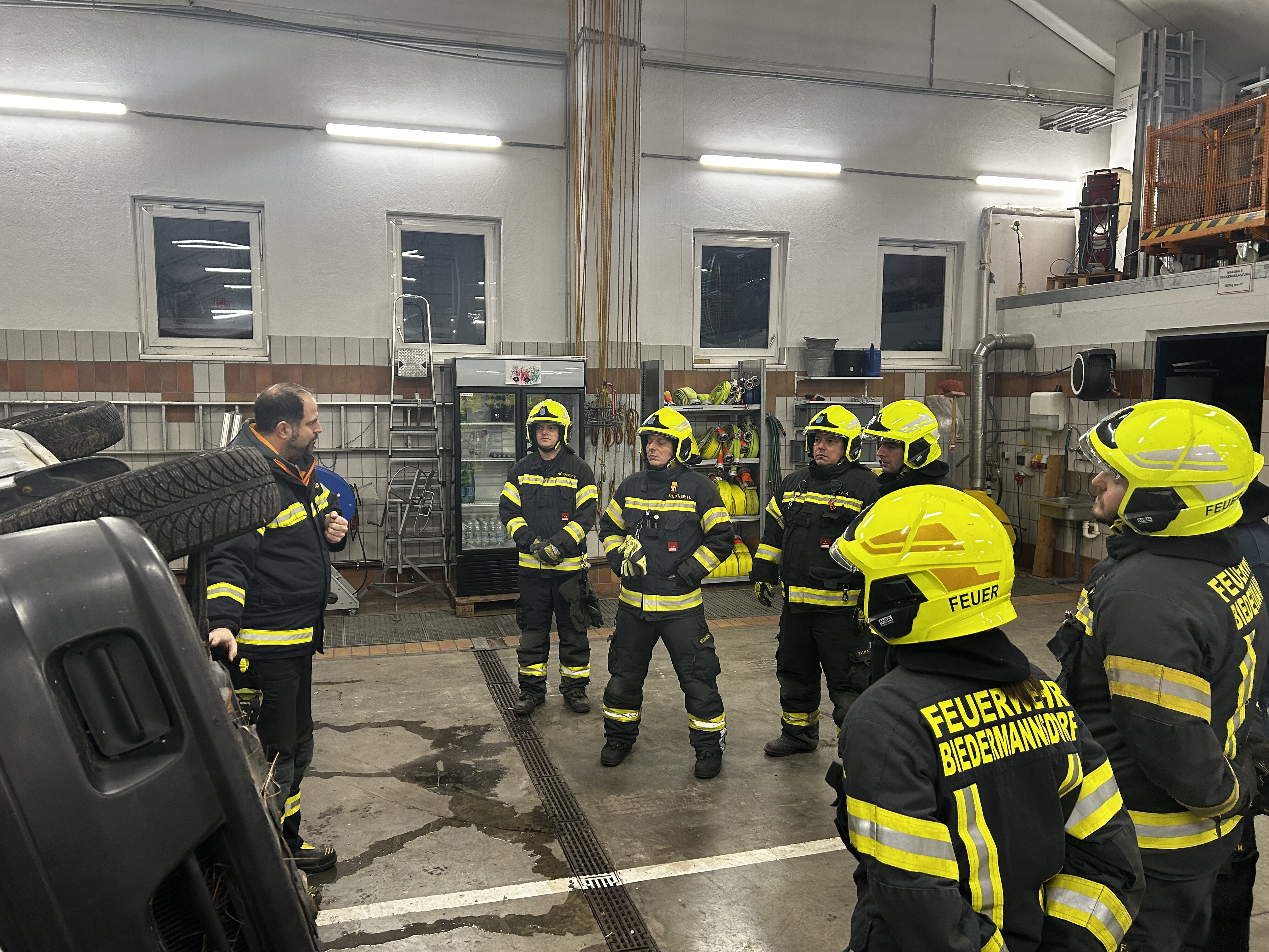 Donnerstagabend wurde das Projektteam und das Ausbildungsteam durch einen Mitarbeiter der Firma Scheureder auf die neuen Gerätschaften eingeschult, um bereits vor der Anlieferung des Fahrzeuges die Einsatzkräfte schulen zu können.