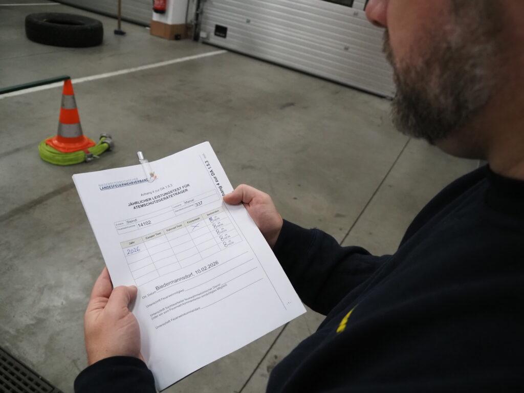 Jährlich findet eine Tauglichkeitsüberprüfung für Atemschutzträger in der Form eines standardisierten Finnentests statt. Unter Aufsicht des Sachbearbeiters für den feuerwehrmedizinischen Dienst absolvierten 12 Kameraden diesen Test. Überdies ist in Altersgruppen abhängigen Intervallen eine medizinische Überprüfung erforderlich.