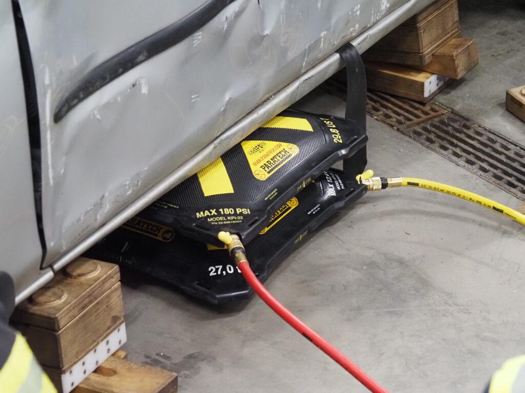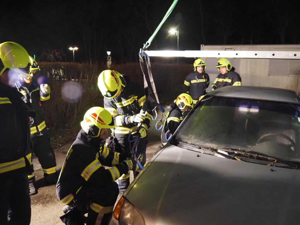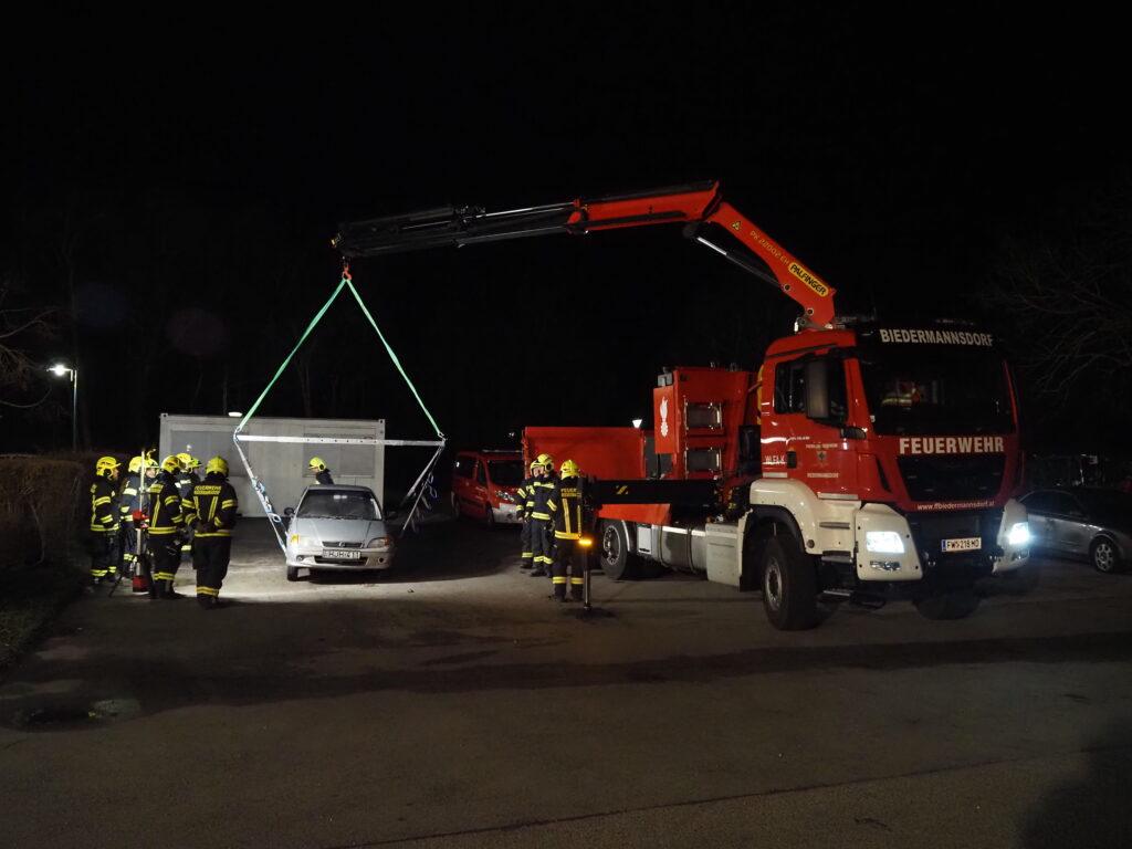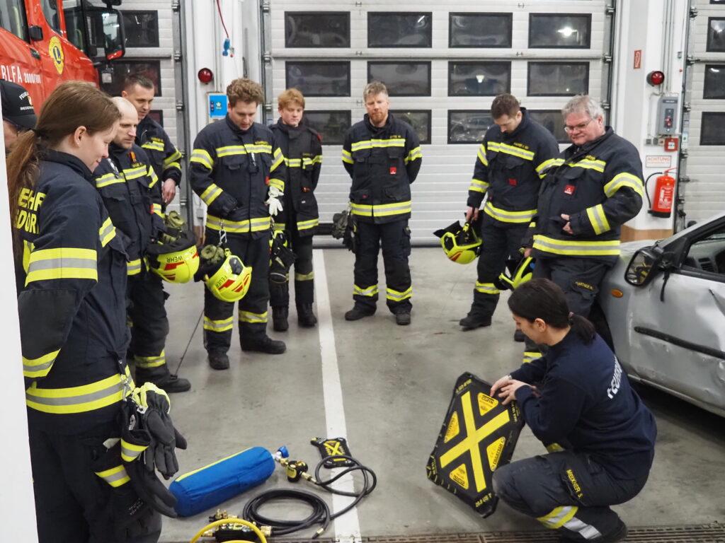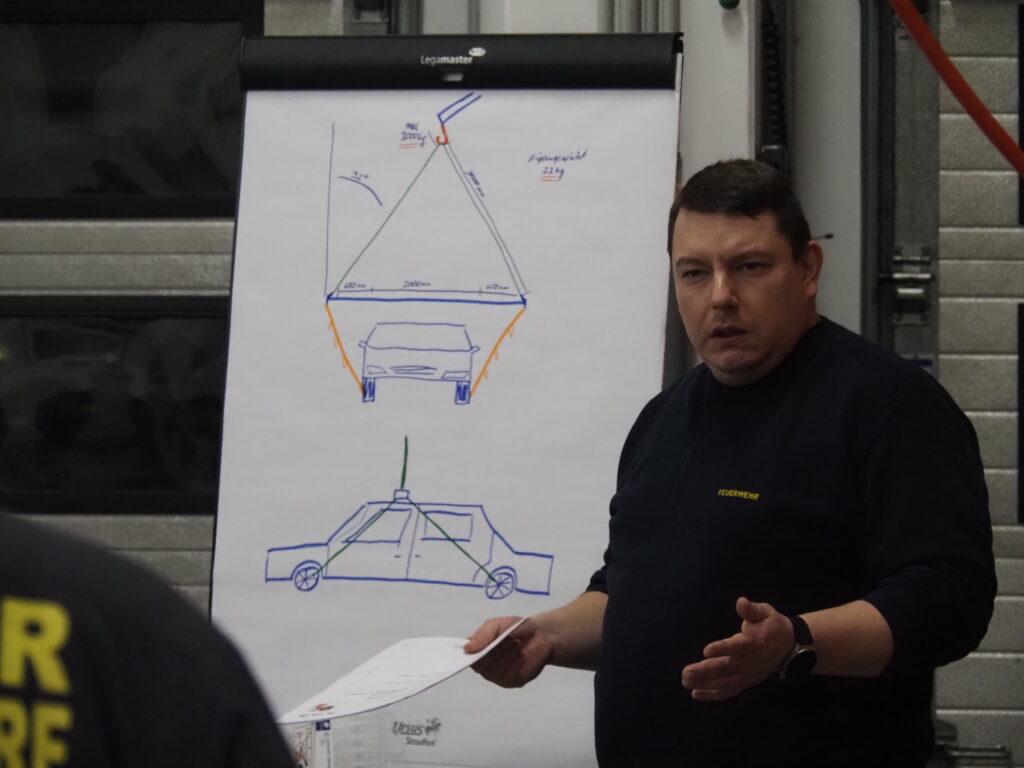 Parallel hierzu wurde das ebenfalls neu angeschaffte Hebekreuz vorgestellt und praktisch beübt, welches in vielen Situationen die Fahrzeugbergung schneller und schonender möglich macht.