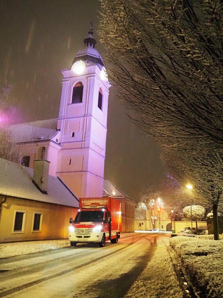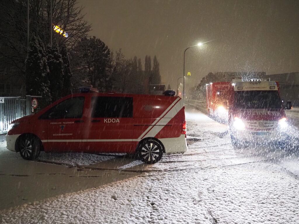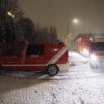 Im Schneetreiben haben die B,- und C-Einsatzmaschinisten eine Fahrerschulung absolviert. Es galt einen abgesteckten Parcours vorwärts, als auch rückwärts zu absolvieren. Weiters wurde Fahrpraxis mit Straßenkunden verbunden und mit dem Schneeschild am Telelader gearbeitet. Im Industriezentrum-Süd wurde begonnen, standardisierte Aufstellflächen zu schulen.