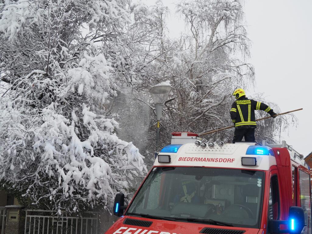 Neben einer LKW Bergung im Industriezentrum wurden ein Baum auf der Achauerstraße und zwei große abgebrochene Äste auf der Fasanstraße entfernt und so die Verkehrsfläche von den Hindernissen befreit.