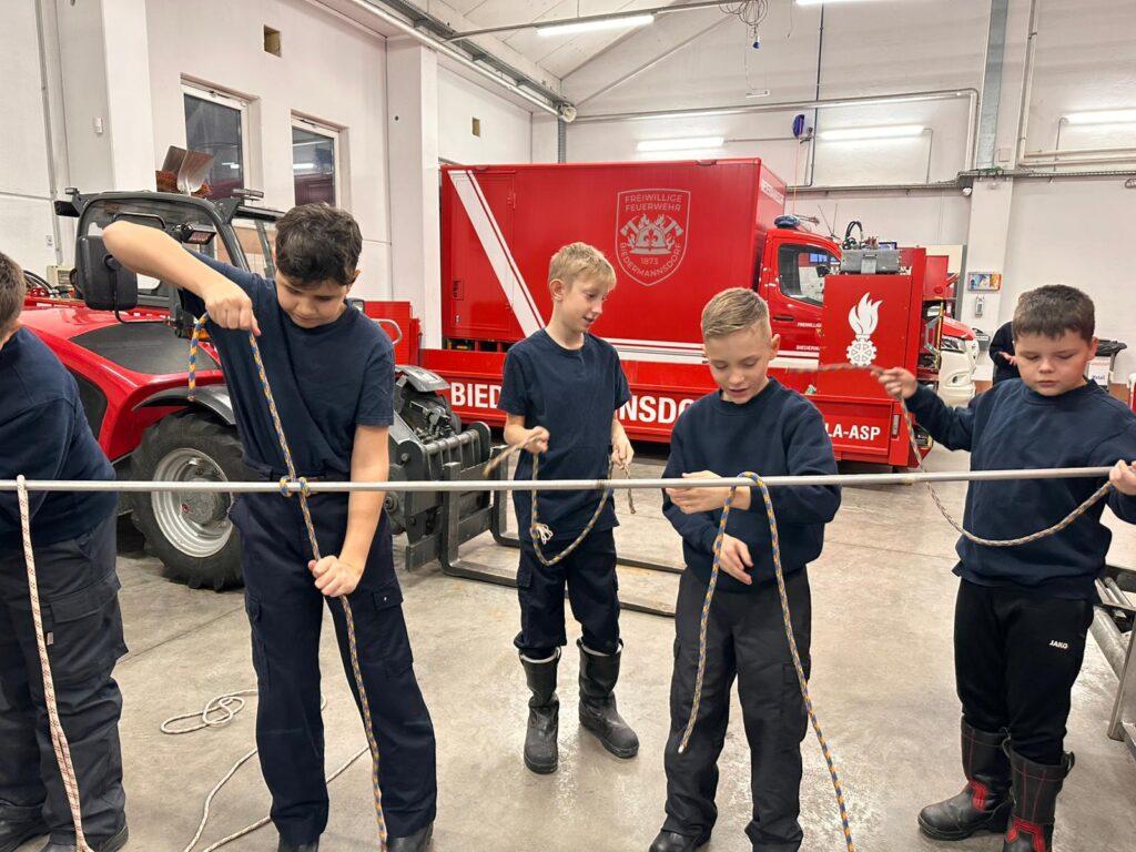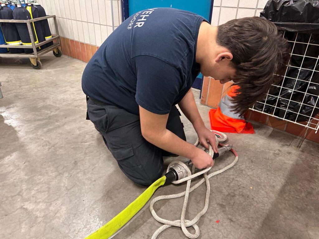 Beschreibung: Für den Ende März stattfindenden Wissenstest laufen die Vorbereitungen bereits in vollen Zügen! Montagabend wurde Geräte,- und Knotenkunden gelehrt.