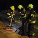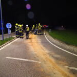 Bei einem Schwerlasttransport platzte eine Hydraulikölleitung und verursachte so eine beträchtliche Ölspur im Bereich der L154. Durch die Begleitfahrzeuge wurde umgehend der Bereich abgesichert und die Feuerwehr sowie die Polizei verständigt. Vor Ort wurde durch die alarmierten Einsatzkräfte in Absprache mit dem Straßenmeister die Ölspur gebunden. Die beschädigte Hydraulikleitung wurde durch eine Fachfirma noch vor Ort in Stand gesetzt.
