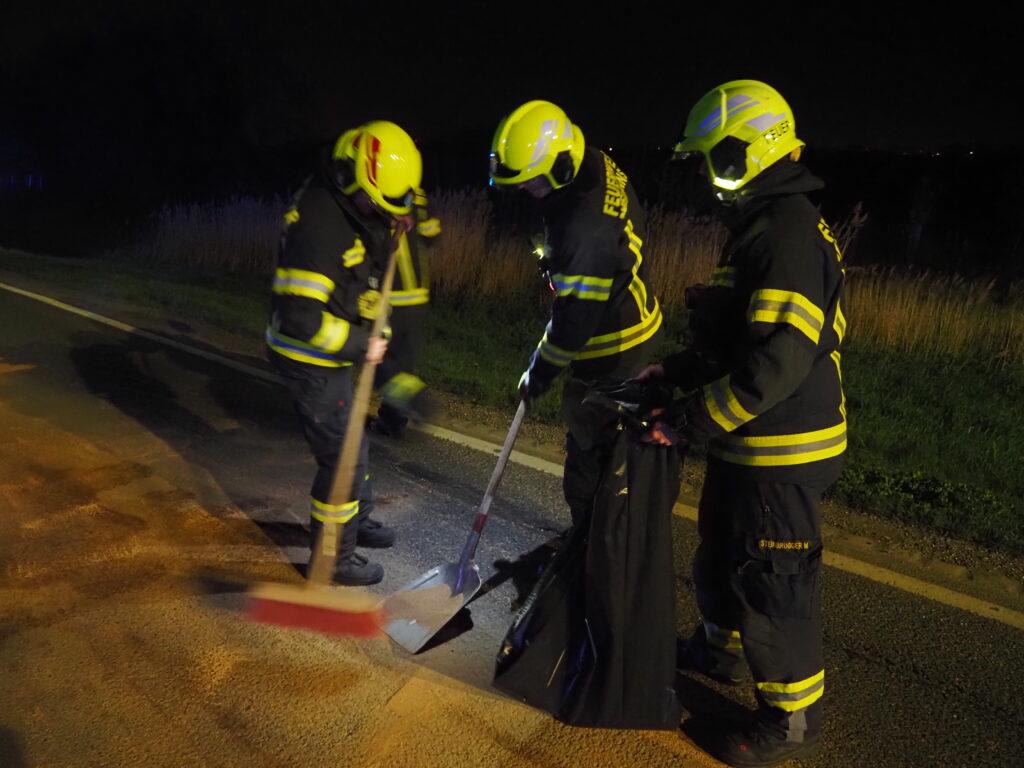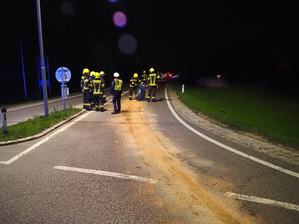 Bei einem Schwerlasttransport platzte eine Hydraulikölleitung und verursachte so eine beträchtliche Ölspur im Bereich der L154. Durch die Begleitfahrzeuge wurde umgehend der Bereich abgesichert und die Feuerwehr sowie die Polizei verständigt. Vor Ort wurde durch die alarmierten Einsatzkräfte in Absprache mit dem Straßenmeister die Ölspur gebunden. Die beschädigte Hydraulikleitung wurde durch eine Fachfirma noch vor Ort in Stand gesetzt.